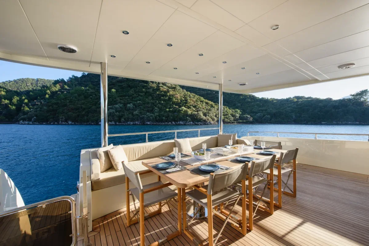 Klima kullanımı, sınırlı Wi-Fi, mürettebat hizmeti, dizel ve benzin giderleri ve teknedeki ekipmanların kullanımı. Çarşaf, havlu, plaj havlusu ve içme suyu da sağlanmaktadır. Tüm charter ve rıhtım vergileri, liman işlemleri, transit log ve gemi acenteleri ile ilgili formaliteler ve tekne sigortası dahildir (seyahat sigortası yaptırmanız tavsiye edilir).