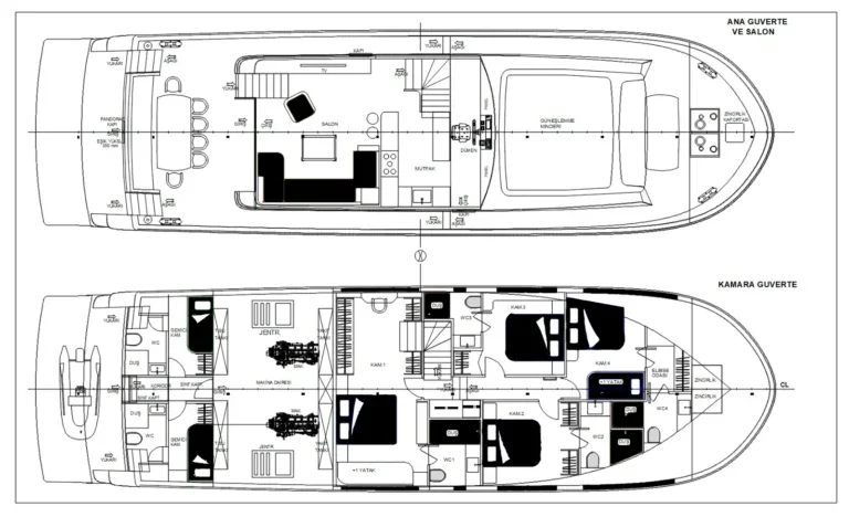 4 kabin, 9 misafir kapasitesi ve 4 kişilik ekibiyle Marmaris, Fethiye, Göcek, Bodrum, Yunan Adaları tarafında iyi çalışır.